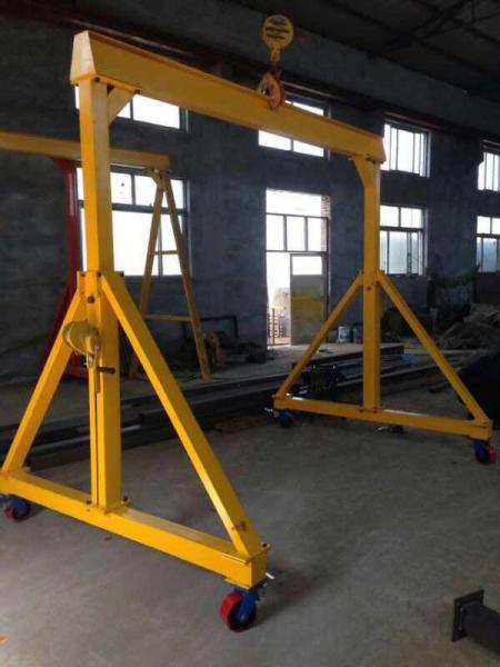 There are many types of gantry crane, here is portable gantry crane. Portable gantry crane is called mini gantry crane, frame gantry crane, it's a light small lifting crane, which has the features of simple design, moving freely, high quality, cheap price. The total lifting capacity of portable gantry crane is 0.5ton-10ton, and it adjusts to work in small workshop, warehouse, stocks, etc. Especially in areas where cranes are required to move freely.